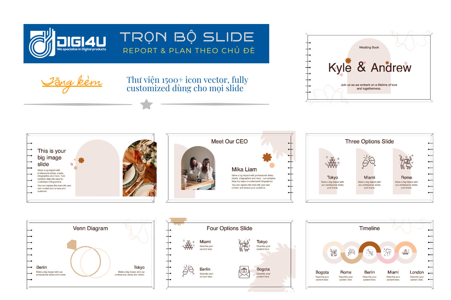 Bộ Template mẫu dựng sẵn với thiết kế chuyên nghiệp, dễ sử dụng, có thể tùy chỉnh theo ý thích không giới hạn. Cho hiệu quả cao nhất cả về visual lẫn chất lượng nội dung. Sếp/ Khách hàng/ Đối tác sẽ không thể rời mắt khỏi slide trình bày của bạn ^_^