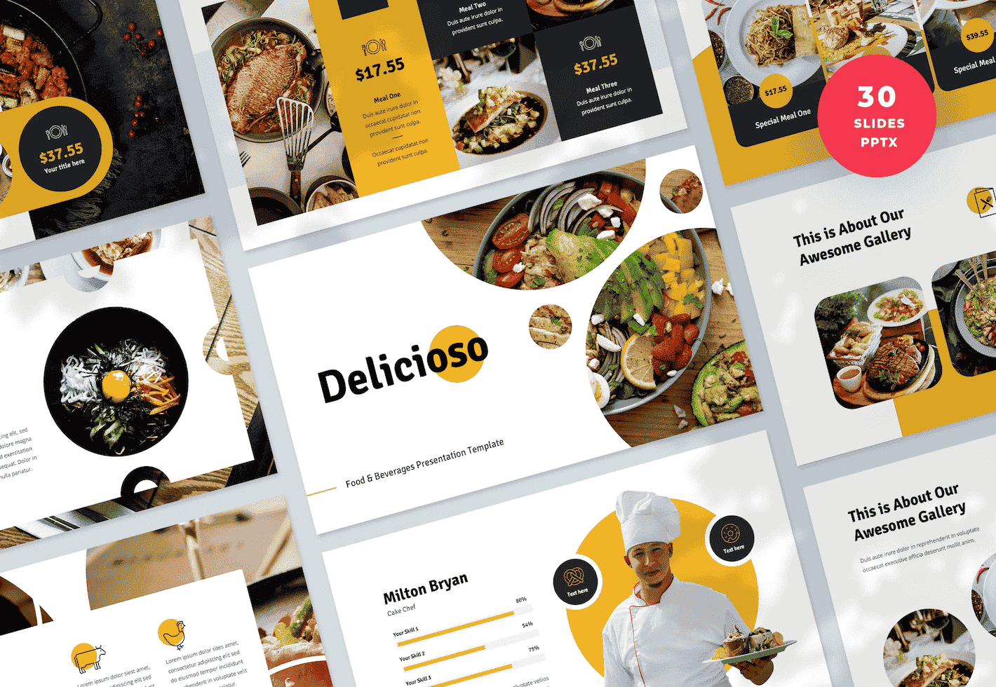 • Bộ Template Mẫu Chủ Đề Thực Phẩm – Food Beverage dùng cho các bài trình bày chuyên ngành với visual ấn tượng & khả năng tùy chỉnh không giới hạn.