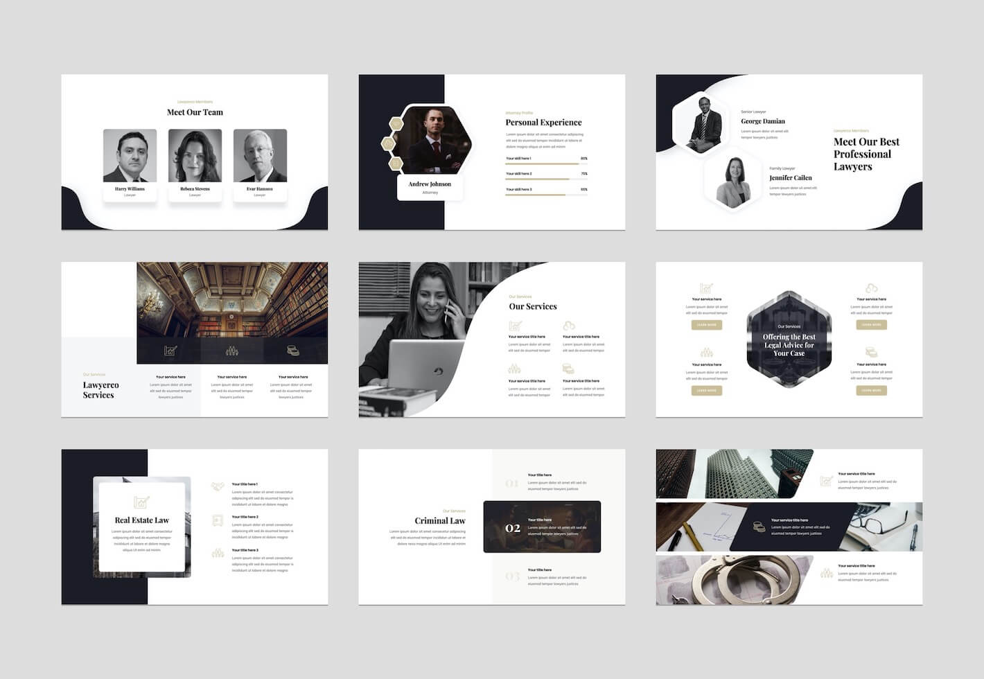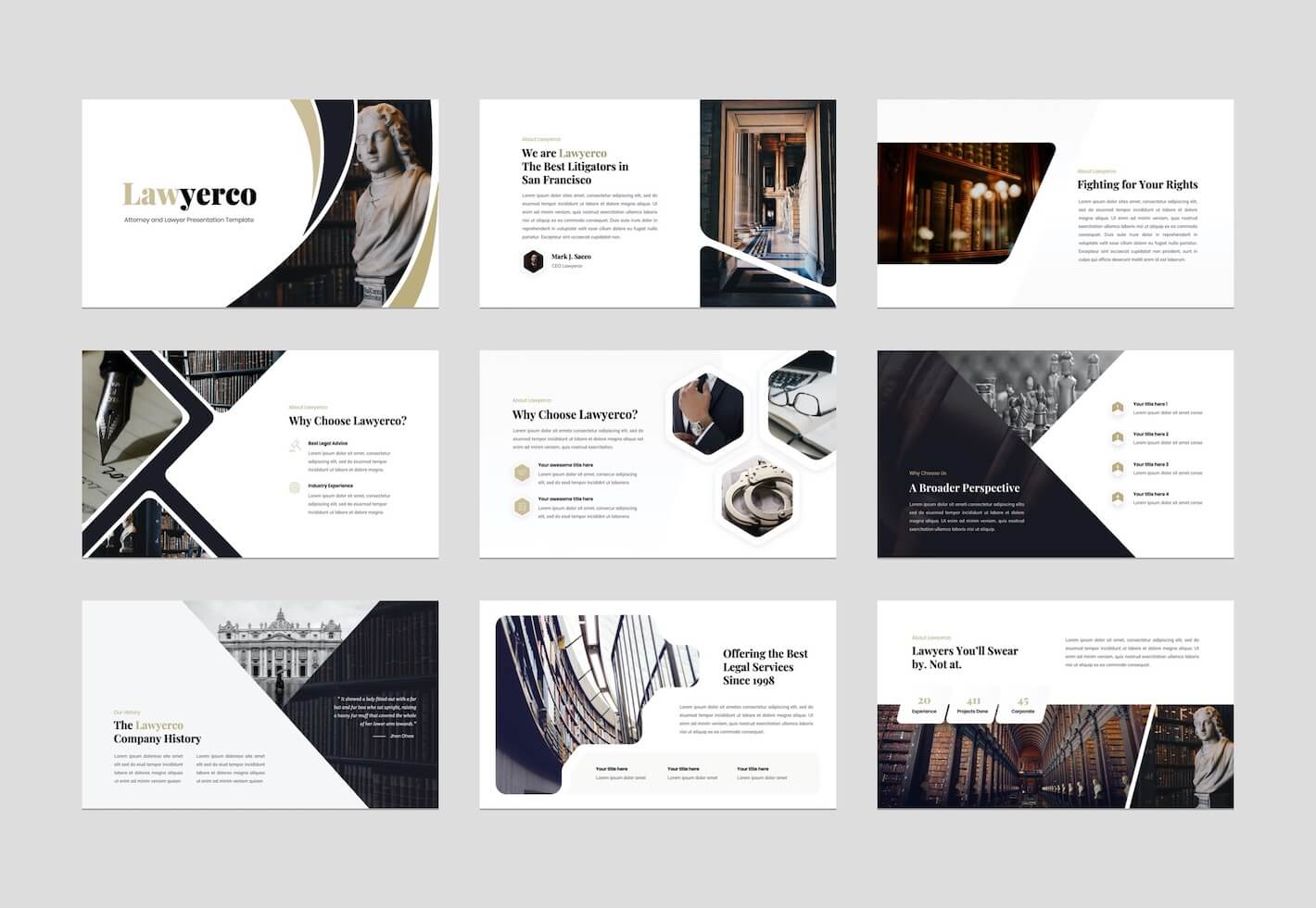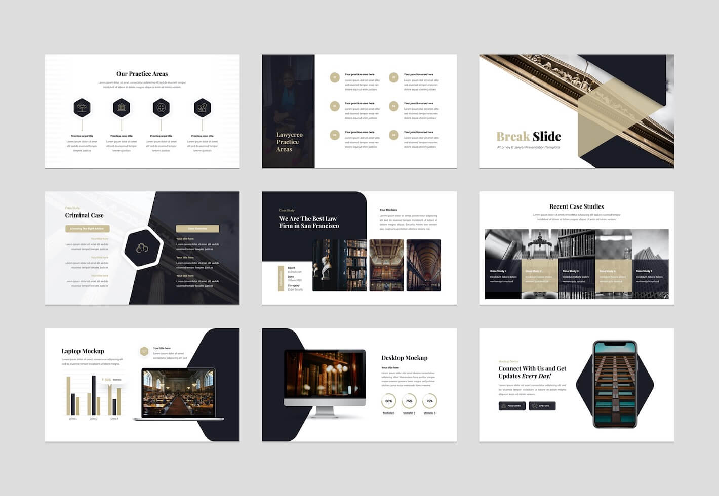 - Bộ Template mẫu ngành Luật dùng cho các bài trình bày chuyên ngành với visual ấn tượng & khả năng tùy chỉnh không giới hạn.