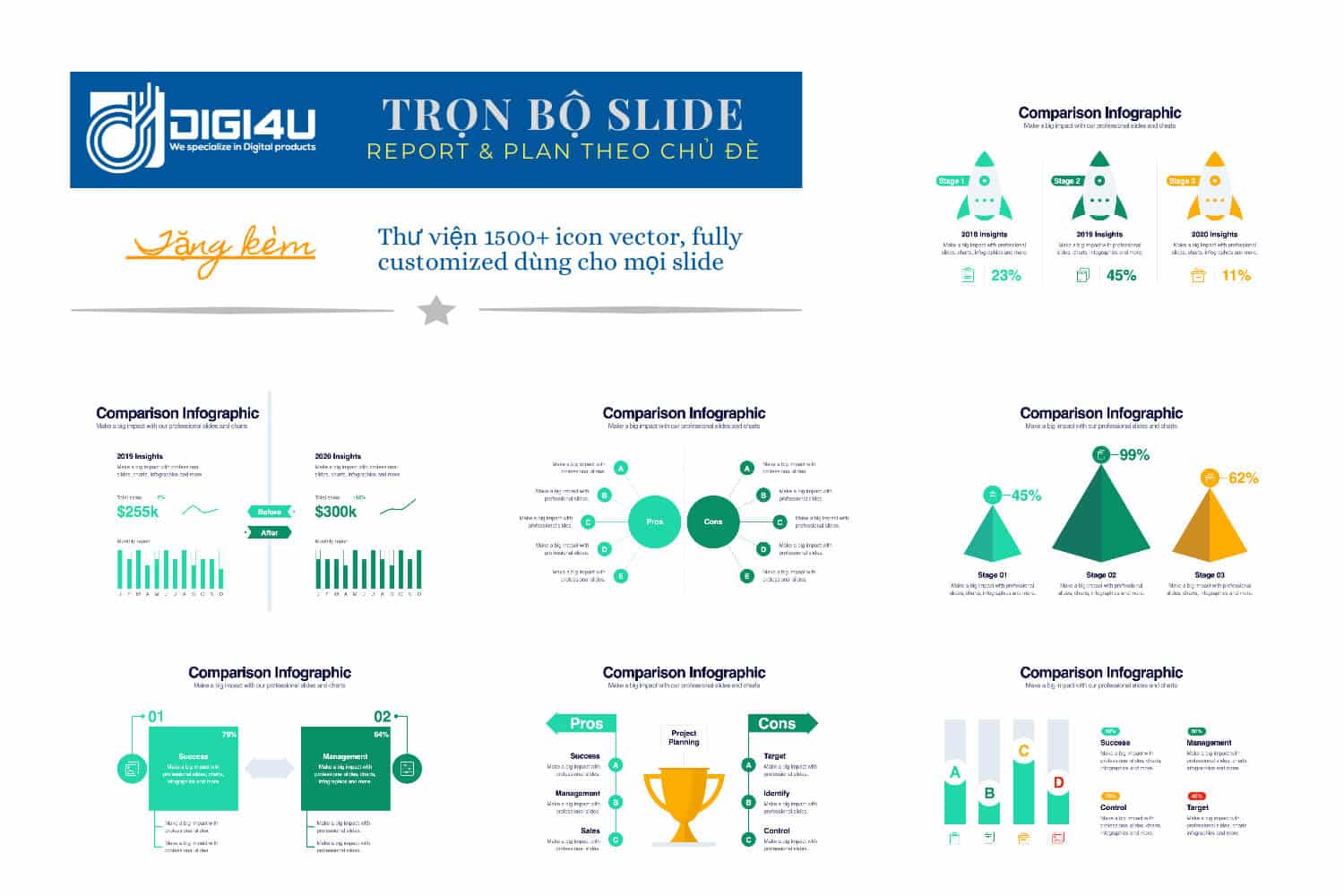 - Comparison Template V2 là bộ 20 slides mẫu làm báo cáo/ kế hoạch với visual ấn tượng & khả năng tùy chỉnh không giới hạn.