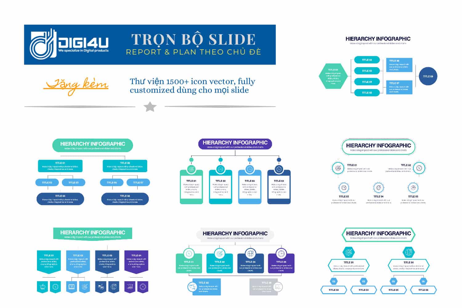 • Hierarchy Infographics Template là bộ 20 slides mẫu làm báo cáo/ kế hoạch với visual ấn tượng & khả năng tùy chỉnh không giới hạn.