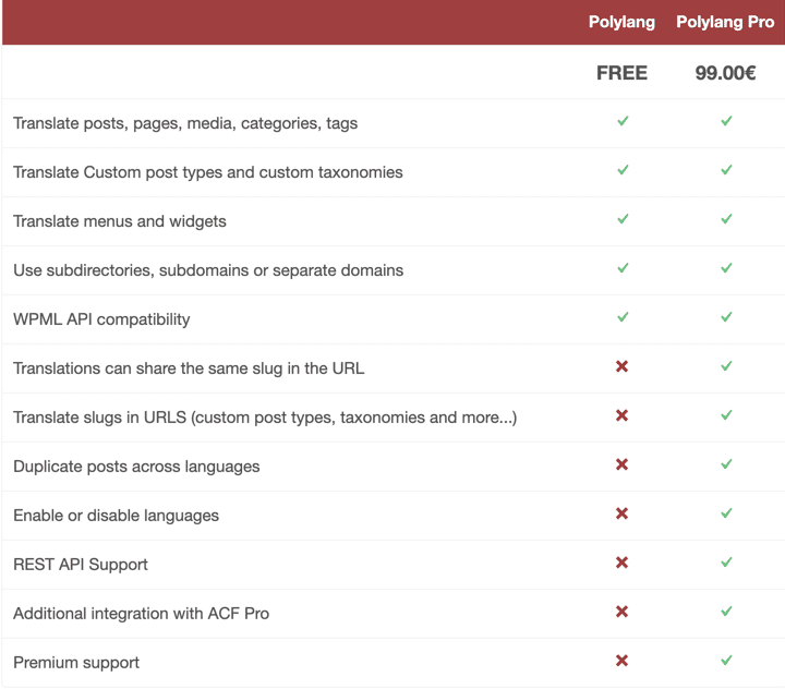 - Nội dung gốc, danh mục, thẻ bài đăng cũng như một số metas khác có thể được sao chép tự động khi thêm bài đăng mới hoặc bản dịch trang. Hai bài đăng thậm chí có thể được đồng bộ hóa để xuất hiện giống nhau bằng các ngôn ngữ khác nhau.