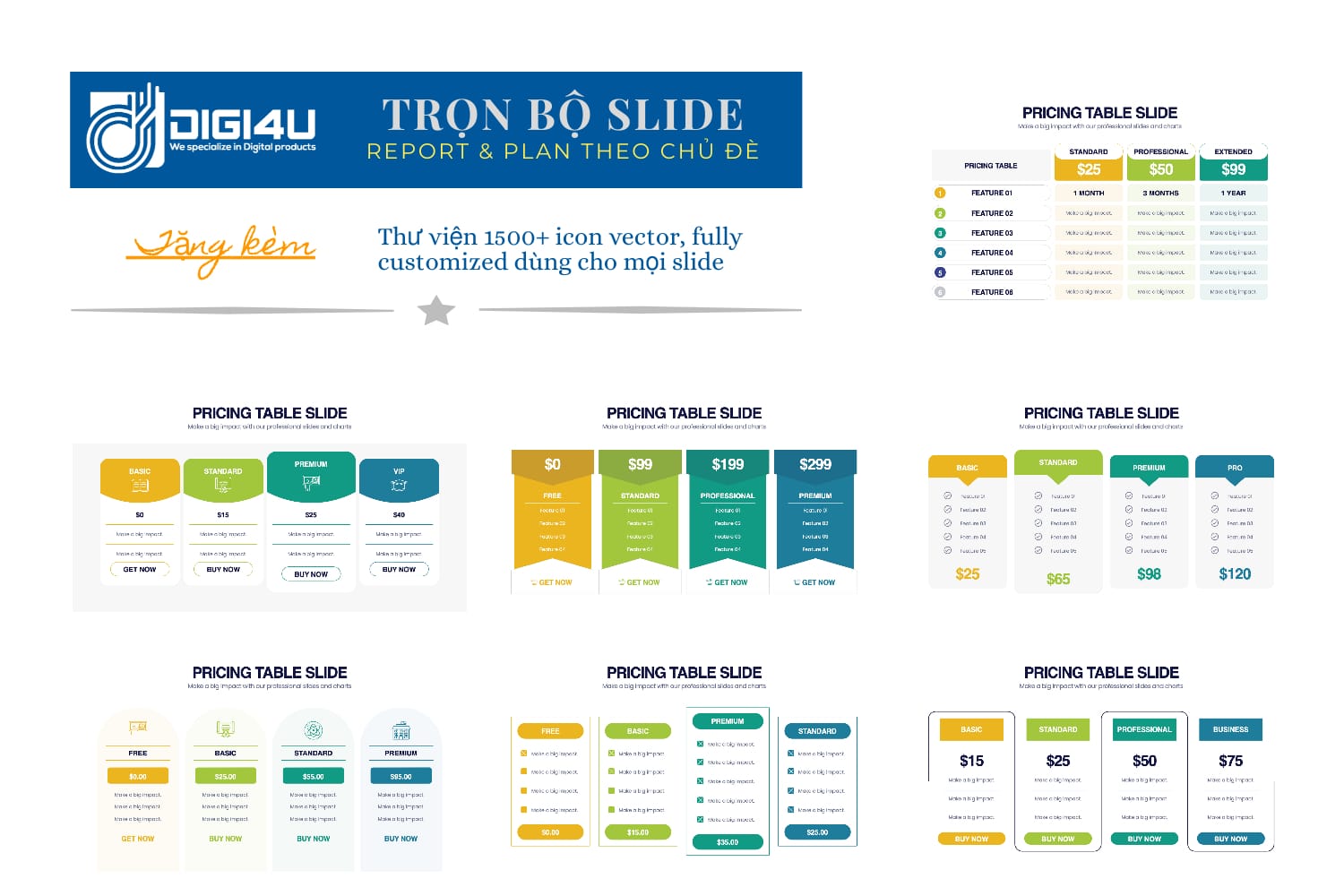Pricing Tables Template – Trọn Bộ 20 Slides Mẫu Bảng Báo Giá Sản Phẩm/ Dịch Vụ