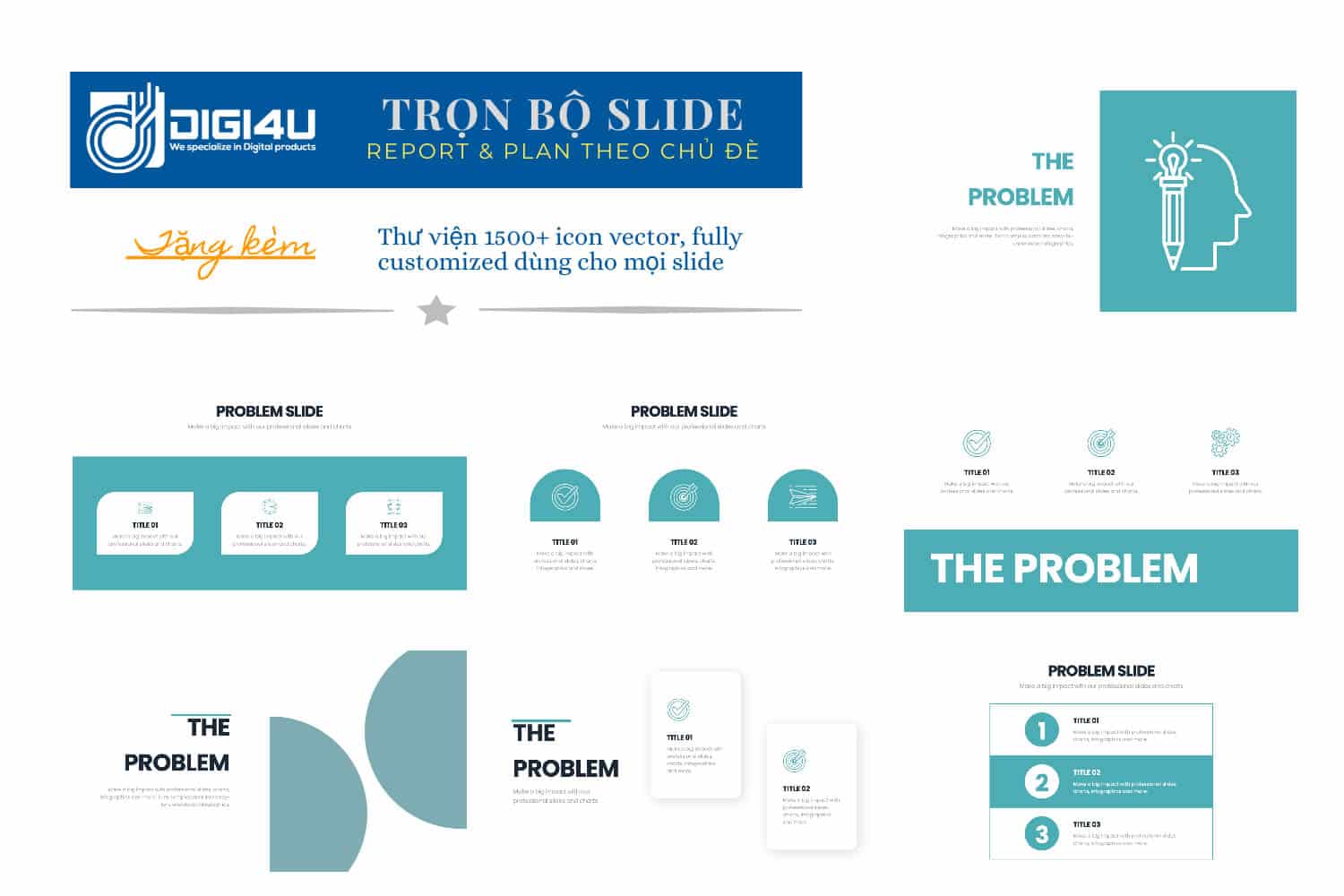 - Problem Presentation Template là bộ 20 slides mẫu làm báo cáo/ kế hoạch với visual ấn tượng & khả năng tùy chỉnh không giới hạn.
