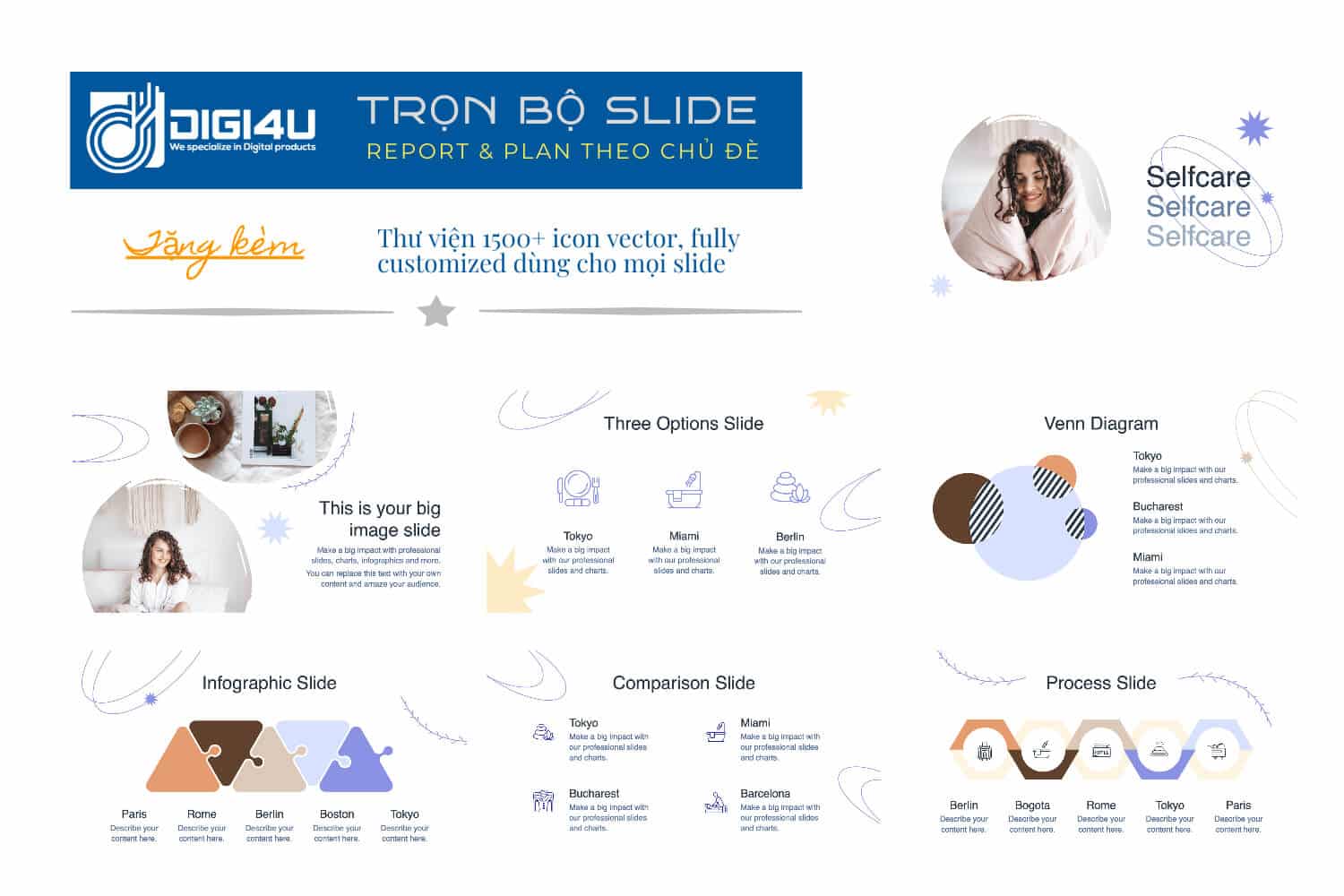 Bộ Template mẫu dựng sẵn với thiết kế chuyên nghiệp, dễ sử dụng, có thể tùy chỉnh theo ý thích không giới hạn. Cho hiệu quả cao nhất cả về visual lẫn chất lượng nội dung. Sếp/ Khách hàng/ Đối tác sẽ không thể rời mắt khỏi slide trình bày của bạn ^_^