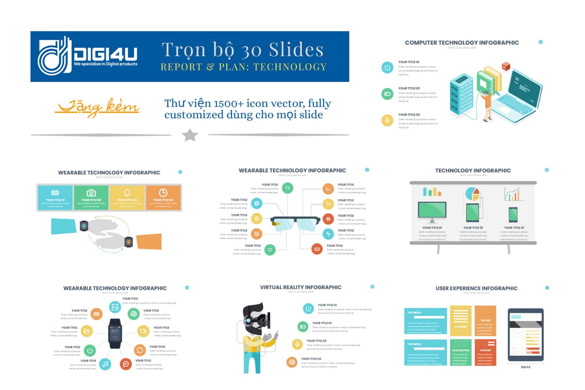 • Technology Template là bộ 20 slides mẫu làm báo cáo/ kế hoạch với visual ấn tượng & khả năng tùy chỉnh không giới hạn.