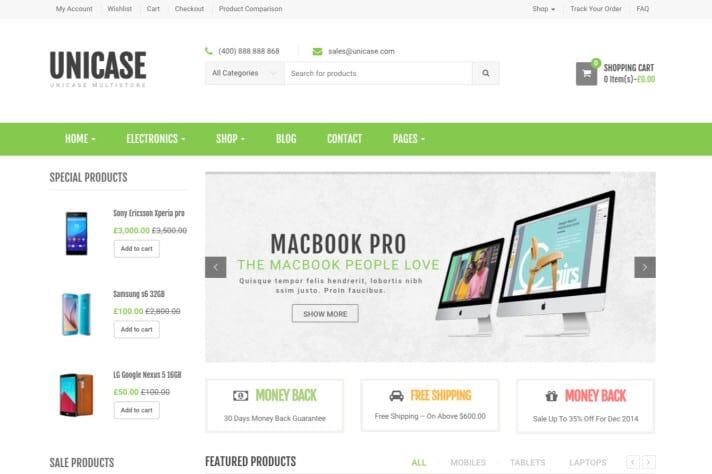 - Unicase WordPress Theme là theme chuyên web bán hàng điện tử với thiết kế tối giản & hiện đại.